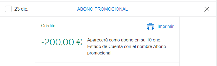 100 euros en crédito en restaurantes una única vez, 50€ activables en la fecha de renovación o activación, y los otros 50€, 6 meses después. No es necesario que el gasto equivalga o supere los 50€ sino que se puede utilizar en varias comidas. Simplemente esos gastos se bonificarán.